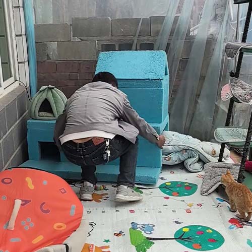 Old sweaters, blankets, or towels make top notch insulating layers for cat shelters . Place them inside the refuge to create a warm napping area.